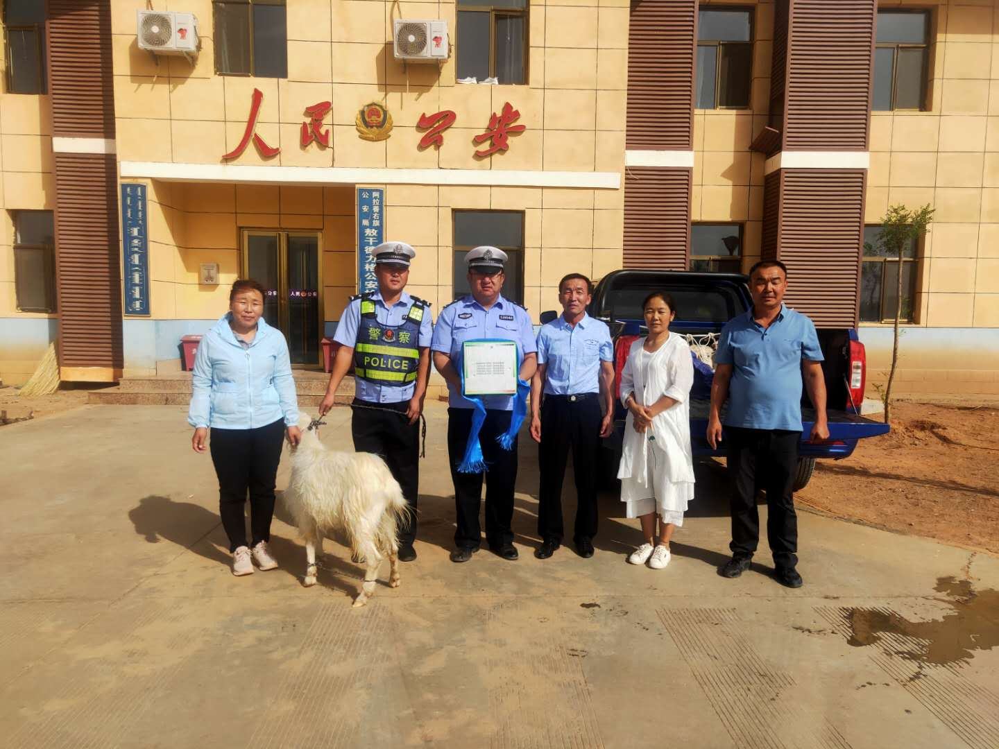 連日來,內(nèi)蒙古自治區(qū)阿拉善右旗塔木素布拉格蘇木(鄉(xiāng)鎮(zhèn))恩格日烏蘇嘎查(行政村)的兩委班子成員帶著當(dāng)?shù)啬撩袢罕姷恼鎿葱囊猓瑏淼骄癄I,對高溫不下“火線”的民警表示親切的慰問和感謝。