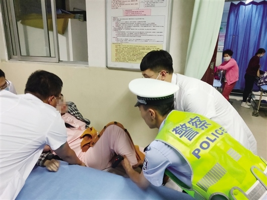 20時(shí)49分,九原區(qū)交警將病人順利送往包頭市中心醫(yī)院。到達(dá)醫(yī)院后,看到患者家屬歲數(shù)大,民警王堒抱起病痛中的姑娘向急診室沖去,平旭則趕忙去聯(lián)系大夫,盡可能為患者就醫(yī)爭取時(shí)間。
