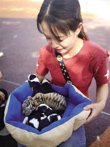 據(jù)發(fā)布信息的包頭市勞動公園動物園園長曾勇介紹,6月2日,動物園里出生了一只雌性小虎崽,小虎崽出生后,虎媽媽因沒有帶娃經(jīng)驗(yàn),出現(xiàn)脾氣暴躁的情況,為防止小虎崽被傷害,只能先給它喂食羊奶。動物園在高興之余借鑒了其他地區(qū)的應(yīng)急措施,由于狗和貓科動物之間的奶源是互通的,可以實(shí)現(xiàn)相互喂養(yǎng),便發(fā)布消息,希望通過狗媽媽替代哺乳的方式幫助東北虎幼崽成長。為保證虎寶寶健康,動物園決定為它尋找一只生產(chǎn)20天以內(nèi)的狗媽媽,喂養(yǎng)時間為20天左右,喂養(yǎng)期間,動物園為它們準(zhǔn)備單間,小老虎和狗兄弟同吃同住。