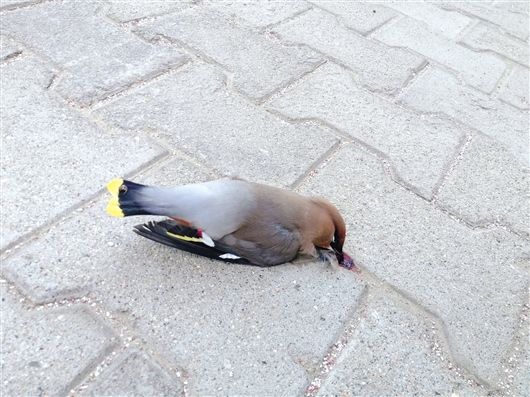 記者隨后向野生動物方面的專業(yè)人士進行了咨詢,聽了記者對現場環(huán)境的描述,專業(yè)人士表示,這些太平鳥很有可能是在飛行的時候慌不擇路撞到小區(qū)的樓體,小區(qū)樓體墻面顏色為橙黃色,而太平鳥喜歡在黃昏時分群飛尋找棲息地,與晚霞顏色接近的墻壁也容易影響太平鳥快速飛行時對距離的判斷。