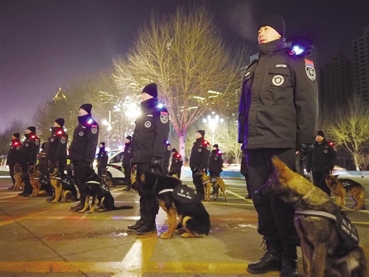 2020年12月31日19時(shí)許,首批警犬馴導(dǎo)員攜帶20條警犬亮相街頭,在轄區(qū)人流密集場所、購物商圈、公交站點(diǎn)及重點(diǎn)單位首次執(zhí)行巡邏任務(wù),開啟警犬巡邏管控警務(wù)新模式。