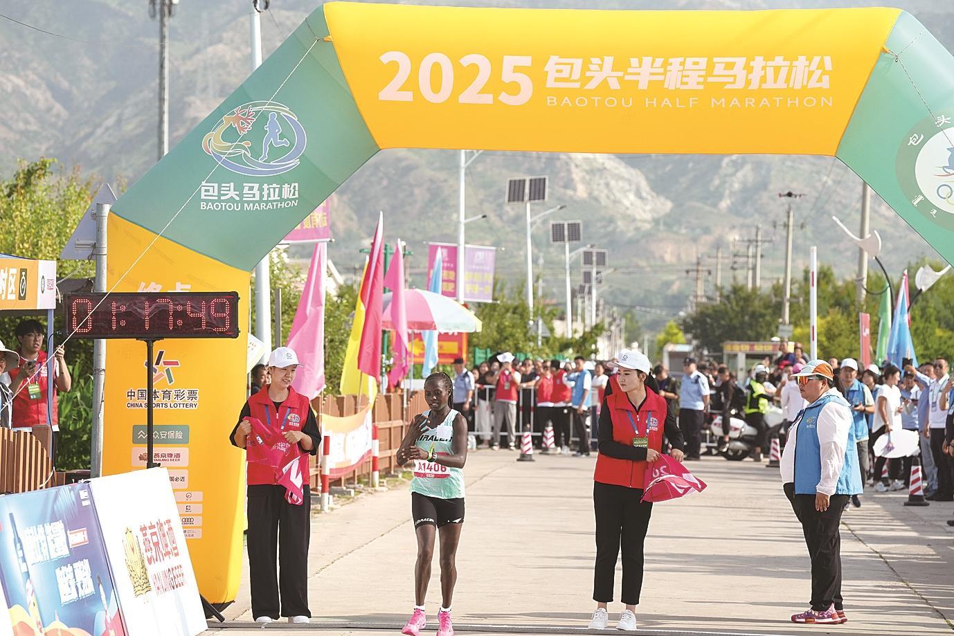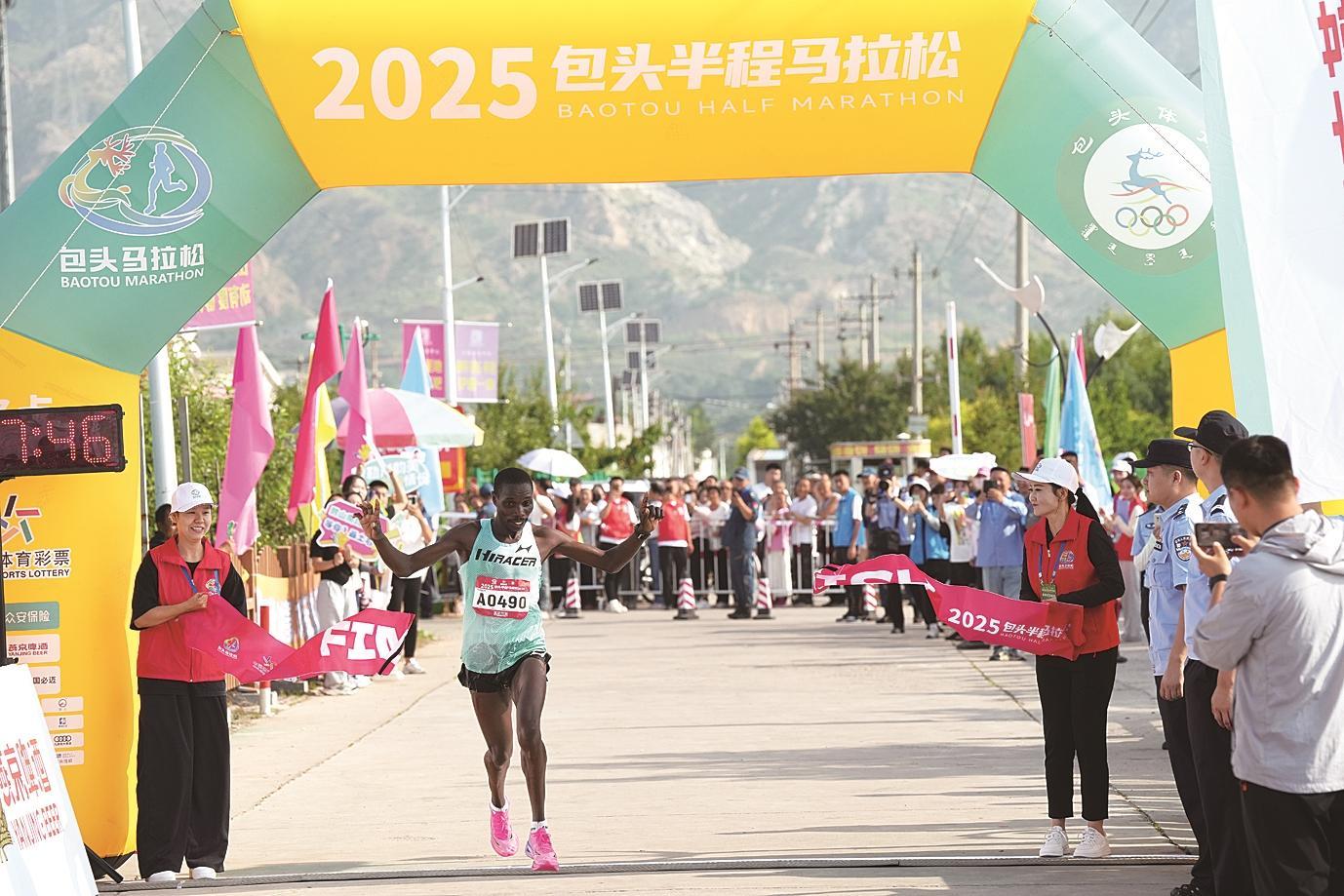 撞線后,男子組冠軍來自肯尼亞的選手Vincent kipchumba Toroitich表示:“這是我第一次來包頭,今天很開心能取得這個成績,感覺包頭非常好。”