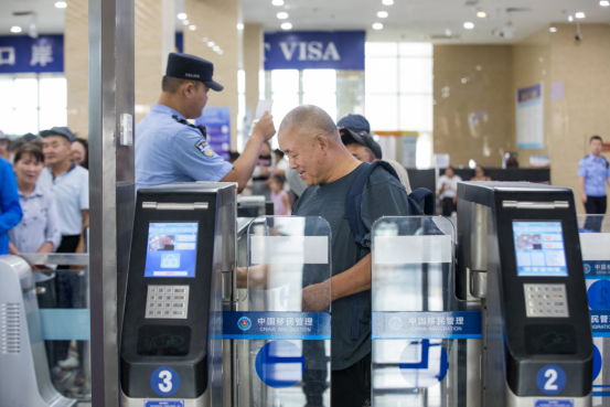 二連出入境邊防檢查站移民管理警察正在對(duì)夜間出境列車(chē)進(jìn)行查驗(yàn)。郭鵬杰 攝