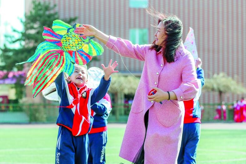 3月29日,呼和浩特市南門外小學的學生在老師指導(dǎo)下放飛自己制作的風箏。隨著天氣轉(zhuǎn)暖,該校開展了形式多樣的社會實踐課,培養(yǎng)學生動手、動腦能力,豐富學生的課余活動。