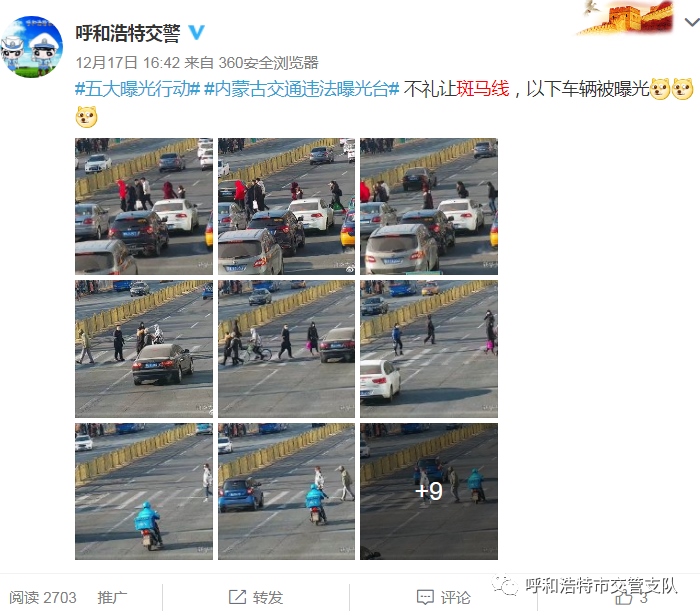 為實現斑馬線交通安全“三提升一下降”(機動車禮讓斑馬線和行人、非機動車守法意識明顯提升,輿論宣傳倡導“機動車禮讓斑馬線”的深度與廣度不斷提升,群眾對城市交通管理的滿意度顯著提升;因不禮讓斑馬線導致人員傷亡的交通事故發(fā)案率大幅下降)的目標,按照交管支隊關于開展集中整治機動車不禮讓斑馬線行動方案的統(tǒng)一部署,支隊指揮中心運用高科技手段,利用高清視頻探頭抓拍機動車不禮讓斑馬線等交通違法行為,并錄入道路交通管理綜合應用平臺。自2020年12月12日至12月31日,利用大屏監(jiān)控設備抓拍260條,錄入系統(tǒng)并予以曝光。