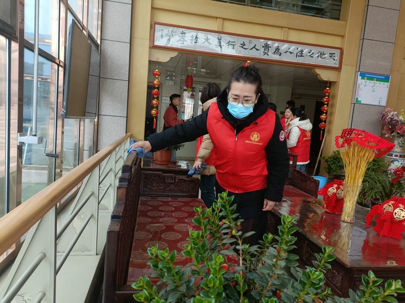志愿者為敬老院義診、剪發(fā)、心理輔導(dǎo)、打掃房間等活動(dòng)。