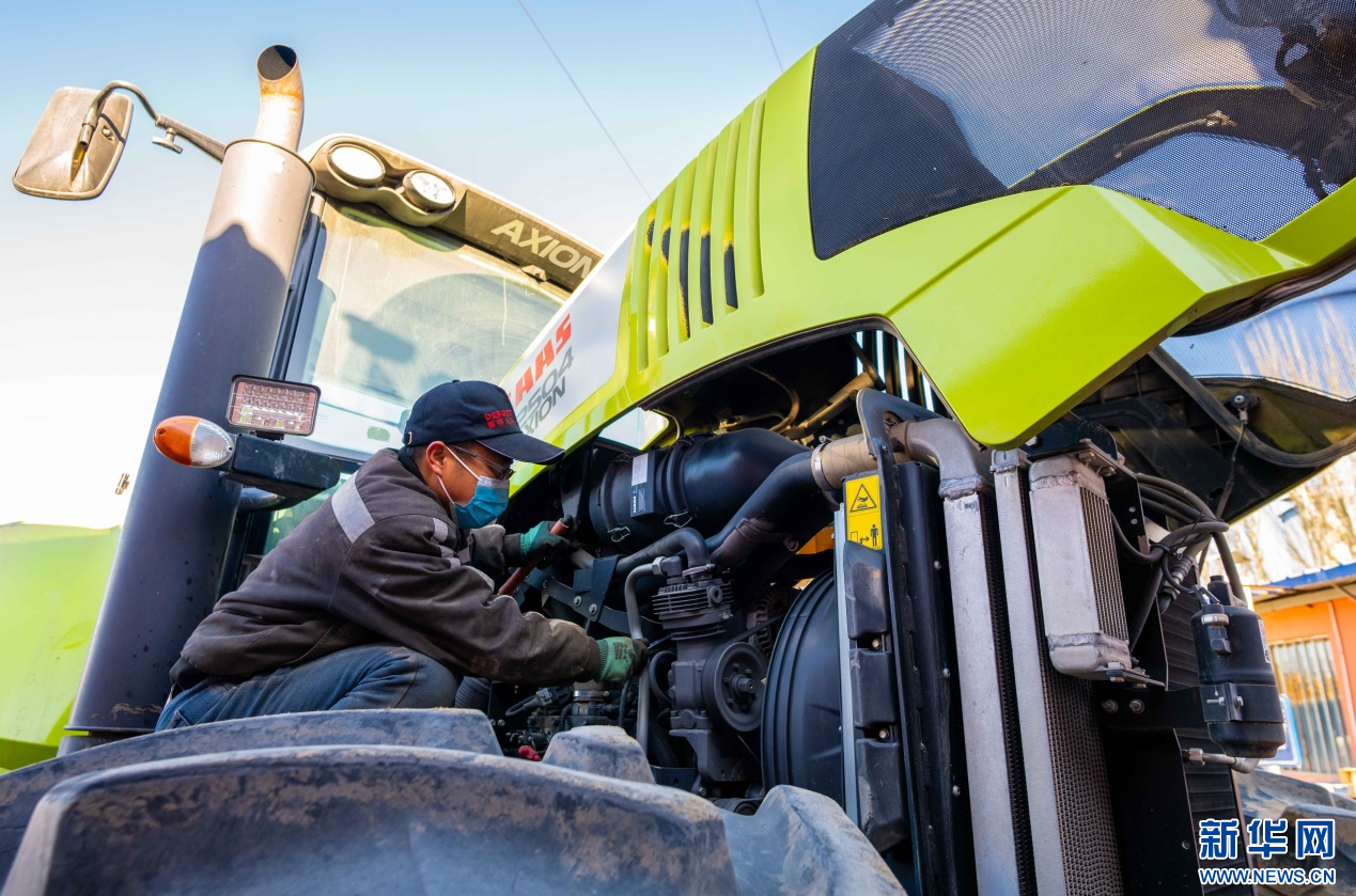 ??2月18日,在位于呼和浩特市玉泉區(qū)的一家農(nóng)機(jī)設(shè)備公司農(nóng)機(jī)具維修區(qū),工作人員在為當(dāng)?shù)氐霓r(nóng)戶(hù)檢修拖拉機(jī)。新華網(wǎng)發(fā)(丁根厚 攝)