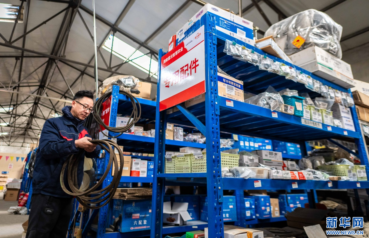 ??2月18日,在位于呼和浩特市玉泉區(qū)的一家農(nóng)機(jī)設(shè)備公司倉(cāng)庫(kù),工作人員在清點(diǎn)農(nóng)機(jī)具配件。新華網(wǎng)發(fā)(丁根厚 攝)
