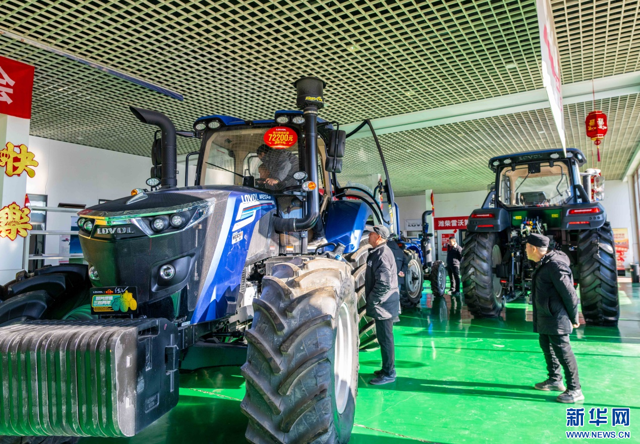 ??2月18日,在位于呼和浩特市玉泉區(qū)的一家農(nóng)機(jī)設(shè)備公司展銷(xiāo)大廳,農(nóng)戶(hù)在咨詢(xún)選購(gòu)國(guó)家補(bǔ)貼拖拉機(jī)。新華網(wǎng)發(fā)(丁根厚 攝)