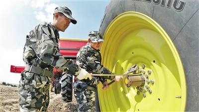 螺絲、輪胎和線路都要認(rèn)真檢查,該檢修的檢修,該上油的上油,農(nóng)機保養(yǎng)好了,春播才不會耽誤事兒。4月15日,在呼倫貝爾農(nóng)墾大河灣農(nóng)牧場有限公司,到處能看到職工們忙碌的身影。職工們搶抓農(nóng)時,備化肥、選種子、修機具,一派繁忙的備耕景象。(記者 李新軍 )
