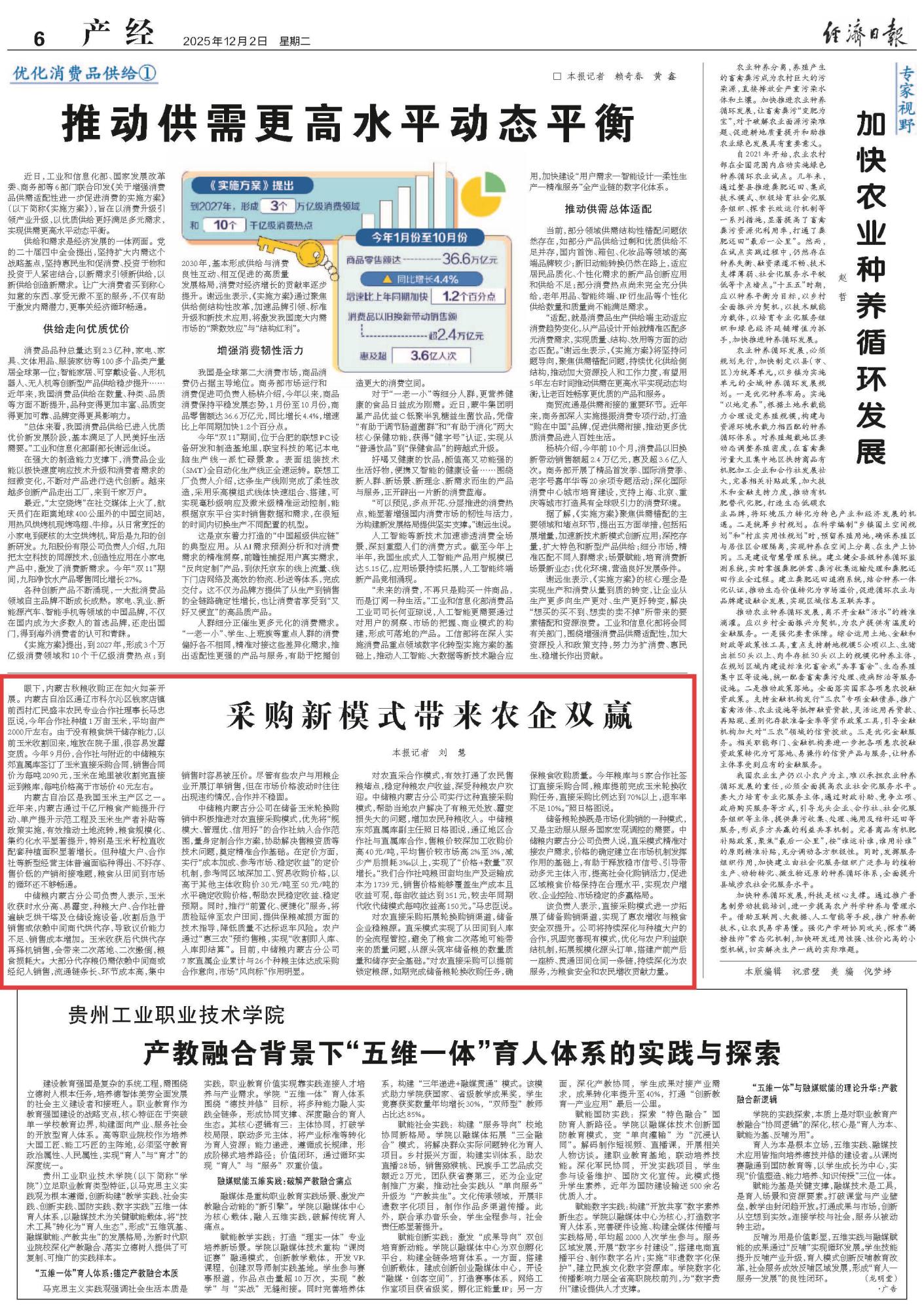 2025年12月2日,《經(jīng)濟日報》第6版刊發(fā)題為《采購新模式帶來農(nóng)企雙贏》的文章,報道了近年來,內(nèi)蒙古通過千億斤糧食產(chǎn)能提升行動、單產(chǎn)提升示范工程及玉米生產(chǎn)者補貼等政策實施,有效推動土地流轉(zhuǎn),糧食規(guī)模化、集約化水平顯著提升,特別是積極推進對農(nóng)直接采購模式,進一步拓展了儲備購銷渠道,實現(xiàn)了惠農(nóng)增收與糧食安全雙提升。