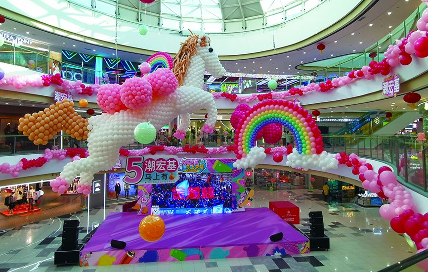 走進(jìn)集寧區(qū)萬達(dá)廣場,一樓東門的跨年倒計時展板格外醒目,“約定,今年要和我愛的人一起跨年”的字樣搭配喜慶的紅色背景,將跨年的儀式感拉滿。商場內(nèi)部的布置巧思盡顯,中庭位置,巨型氣球打造的白色小馬造型栩栩如生,粉色、橙色氣球簇?fù)碜笥遥慌缘牟屎鐨馇蜓b飾蜿蜒舒展,與各品牌門前統(tǒng)一的彩色氣球相映成趣,簡約的裝飾搭配讓節(jié)日氛圍愈發(fā)濃郁。