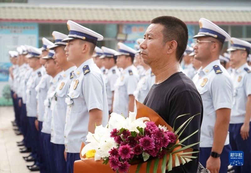 8月4日,在強降雨搶險救災(zāi)中壯烈犧牲的馮振烈士遺體告別儀式在北京八寶山殯儀館舉行。