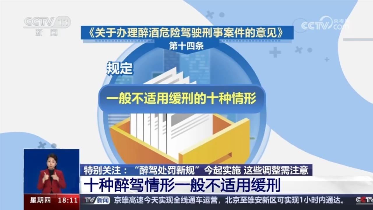 “醉駕處罰新規(guī)”開(kāi)始實(shí)施:15種情形從重處理 10種情形一般不適用緩刑