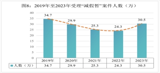 最高檢積極推動(dòng)《關(guān)于依法推進(jìn)假釋制度適用的指導(dǎo)意見》《關(guān)于進(jìn)一步規(guī)范暫予監(jiān)外執(zhí)行工作的意見》落地落實(shí),全國檢察機(jī)關(guān)共受理審查“減假暫”案件304522人,同比上升25.2%。
