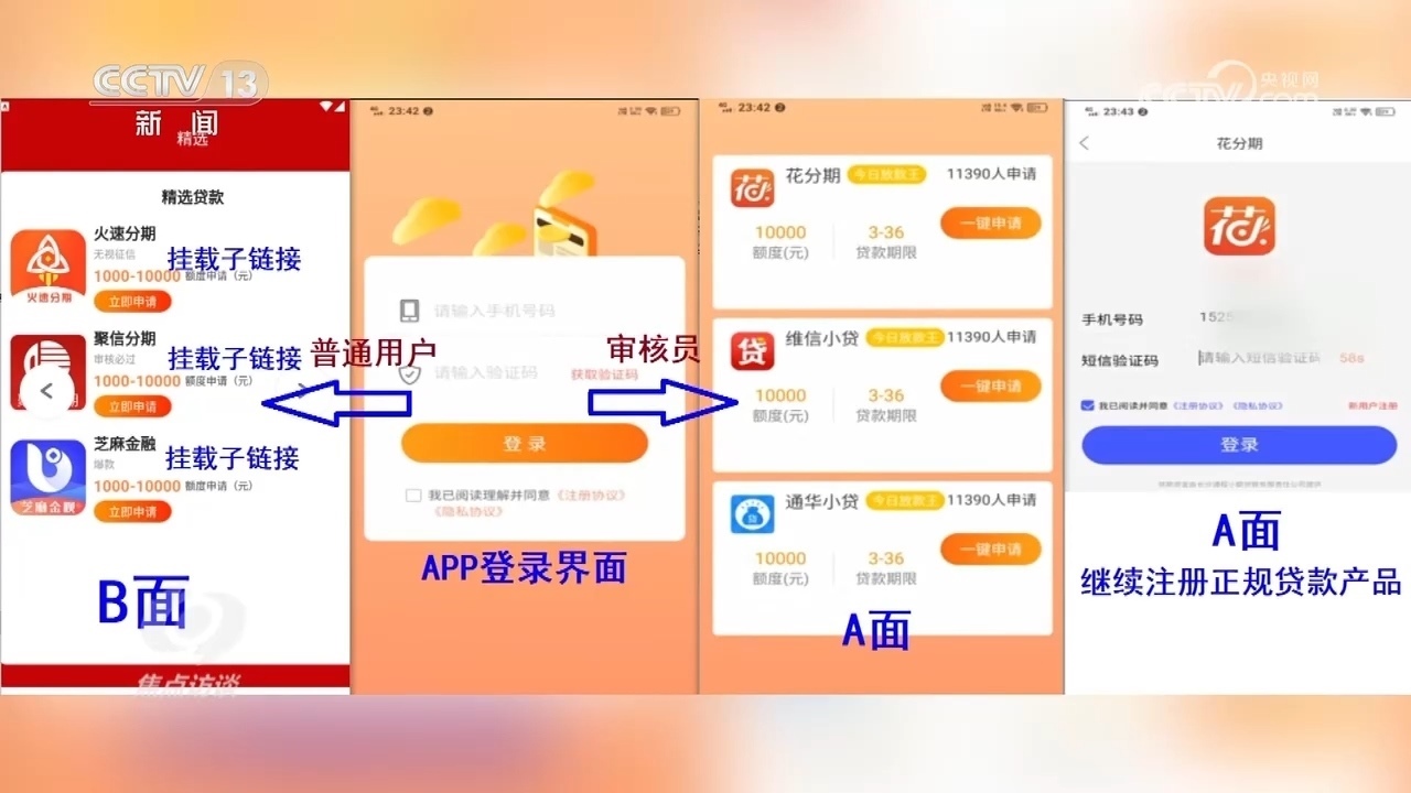 安徽省蕪湖市公安局經(jīng)開區(qū)分局偵查打擊部警務(wù)技術(shù)二級(jí)主管高陽:“提供審核的都是正規(guī)的貸款產(chǎn)品,點(diǎn)擊以后一步一步看起來都很正規(guī),這樣審核員就會(huì)通過,覺得這個(gè)APP是正常的,可以在官方應(yīng)用商城上架。但是普通用戶登錄以后,就會(huì)下載新的APP,新的APP都是詐騙APP。”