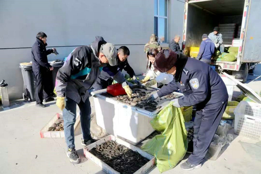 目前,涉嫌非法捕撈、銷售野生魚類的李某、林某、喬某等18人已被依法采取刑事強制措施,案件正在進一步偵辦中。部分涉案魚類活體經(jīng)救護、鑒定已放歸自然。