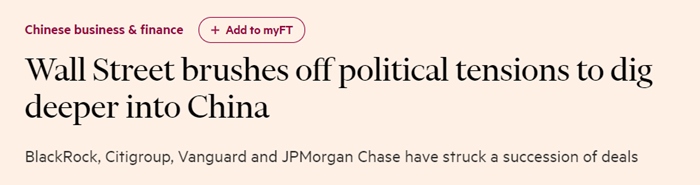 “華爾街部分實(shí)力最雄厚的金融機(jī)構(gòu)正在加緊布局中國的基金管理業(yè)等金融服務(wù)業(yè),以期獲利于中國走向開放的資本市場(chǎng)?!?/p>