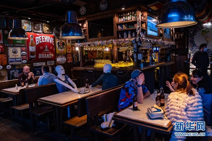 這是6月1日,在土耳其伊斯坦布爾瓦魯娜餐廳,假人將中間的餐桌“霸占”。為了引導(dǎo)顧客保持社交距離,這家餐廳使用假人“霸占”座位,將可供顧客們使用的座位隔開(kāi),避免坐太近。新華社發(fā)(亞辛·阿克居爾攝)
