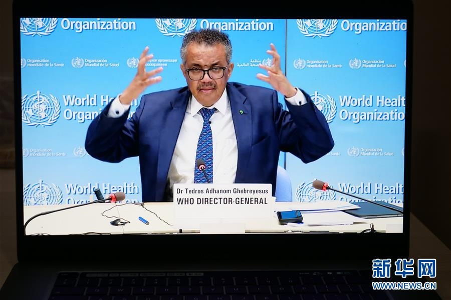 這是6月29日拍攝的世界衛(wèi)生組織總干事譚德塞在瑞士日內(nèi)瓦出席線上記者會(huì)的視頻畫(huà)面。新華社記者張鋮攝