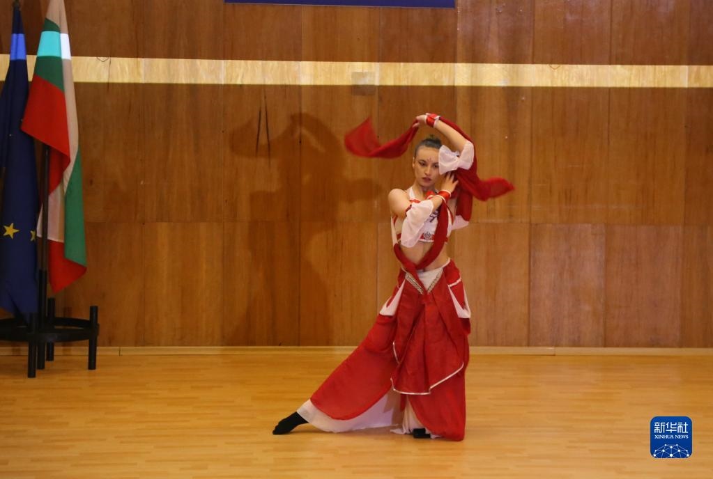 5月15日,參賽選手在保加利亞大特爾諾沃舉辦的“漢語橋”世界大學(xué)生中文比賽保加利亞賽區(qū)決賽上展示才藝。新華社記者林浩攝
