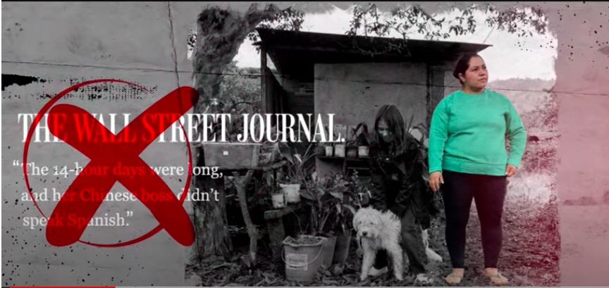 《華爾街日?qǐng)?bào)》在文章中提到厄瓜多爾科卡科多-辛克雷水電站附近兩名當(dāng)?shù)厝?,?duì)她們的話(huà)語(yǔ)斷章取義,以此暗示讀者,當(dāng)?shù)厝恕皩?duì)中國(guó)企業(yè)心懷不滿(mǎn)”以及中國(guó)公司“強(qiáng)迫當(dāng)?shù)貑T工加班且工作環(huán)境惡劣”。
