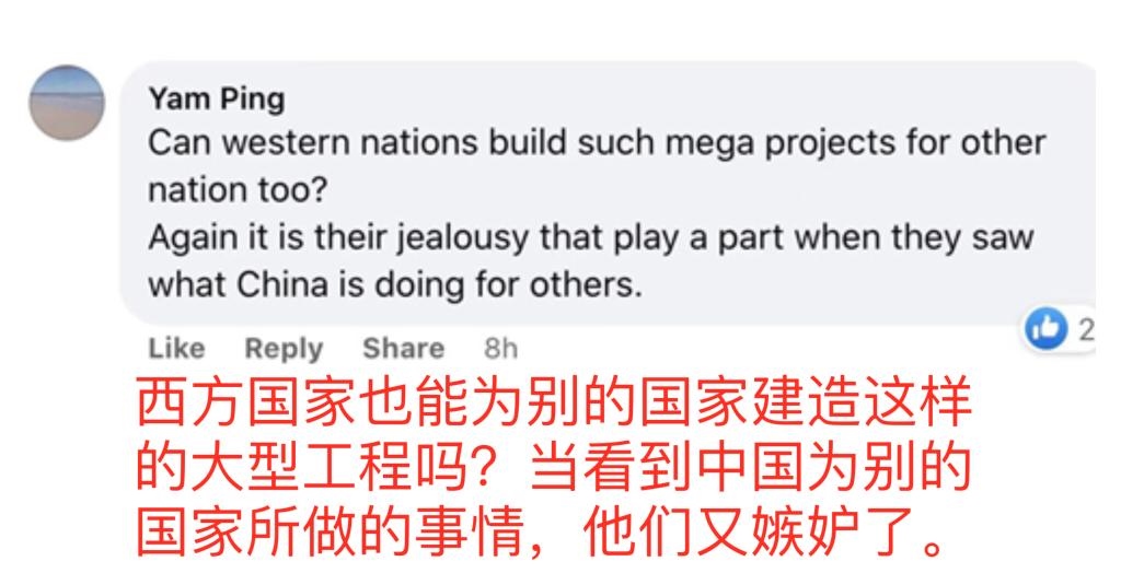 網(wǎng)友亞姆·平說(shuō):“西方國(guó)家也能為別的國(guó)家建造這樣的大型工程嗎?當(dāng)看到中國(guó)為別的國(guó)家所做的事情,他們又嫉妒了?!?/p>