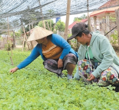 2019年開始,試驗(yàn)站陸續(xù)在老撾各地建立新品種新技術(shù)推廣示范點(diǎn),至今已在全國4個(gè)鄉(xiāng)村建立起技術(shù)推廣示范點(diǎn),指導(dǎo)農(nóng)民進(jìn)行有機(jī)蔬菜、火龍果、水稻種植。金花村位于湄公河支流南俄河邊,曾經(jīng)一到雨季,農(nóng)地就會(huì)被淹。在中方技術(shù)支持下,村民開墾荒地種植蔬菜,累計(jì)種植面積超過500畝?!叭?00多戶,現(xiàn)已有70多戶種植蔬菜,試驗(yàn)站提供優(yōu)質(zhì)種子、傳授種植技術(shù)和防治病蟲害方法,投入少、產(chǎn)量高,讓這里成了首都郊外的蔬菜基地。隨著收入不斷增加,不少村民蓋了新房子、買了汽車,日子越過越紅火?!贝彘L蘇里貢說。