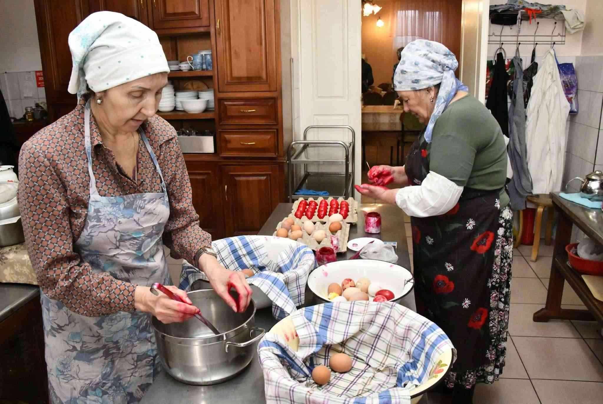 當(dāng)?shù)貢r(shí)間2023年4月13日,俄羅斯扎貝卡爾斯基地區(qū),阿塔馬諾夫卡定居點(diǎn)的一修道院內(nèi),民眾在制作東正教復(fù)活節(jié)前的傳統(tǒng)煮雞蛋。視覺中國(guó)