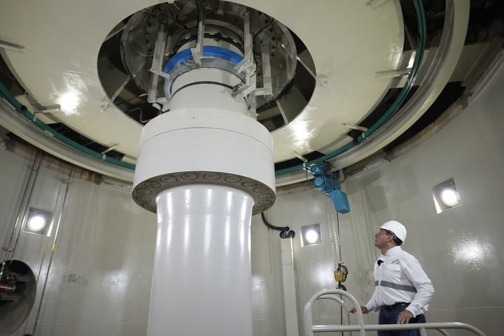 帕圖卡三水電站內(nèi),水電站運(yùn)營(yíng)總經(jīng)理內(nèi)爾松·奧爾特加在檢查設(shè)備運(yùn)行狀況。(戴維·德拉帕斯攝)