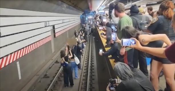 《紐約郵報》稱,視頻顯示,當(dāng)?shù)貢r間6日晚6時左右,在紐約市一地鐵站,多名抗議示威者跳入地鐵軌道,將迎面駛來的地鐵逼停??棺h者高呼“沒有正義,沒有和平”,而在背景聲音中,可以聽到警察試圖呼吁維持秩序。這群示威者呼吁為尼利討回公道。這一危險舉動導(dǎo)致該地鐵站暫時停運。