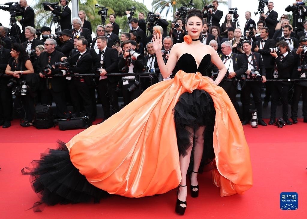 5月16日,在法國(guó)戛納舉行的第76屆戛納國(guó)際電影節(jié)上,演員張雨綺亮相紅毯。   新華社記者 高靜 攝