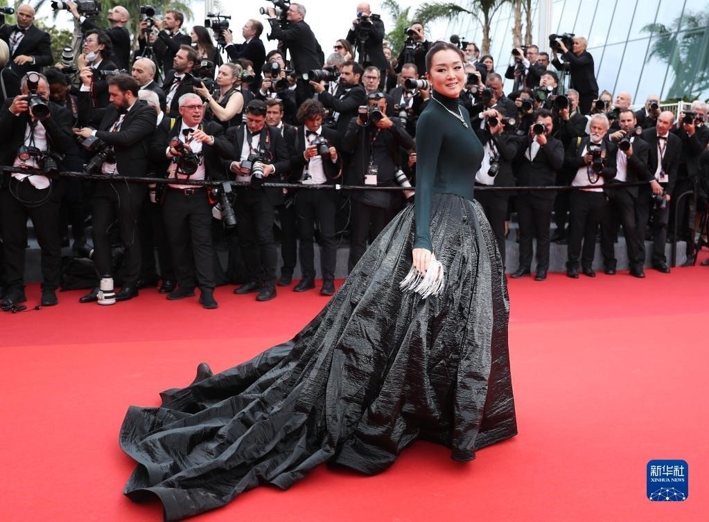 5月16日,在法國(guó)戛納舉行的第76屆戛納國(guó)際電影節(jié)上,演員關(guān)曉彤亮相紅毯。   新華社記者 高靜 攝