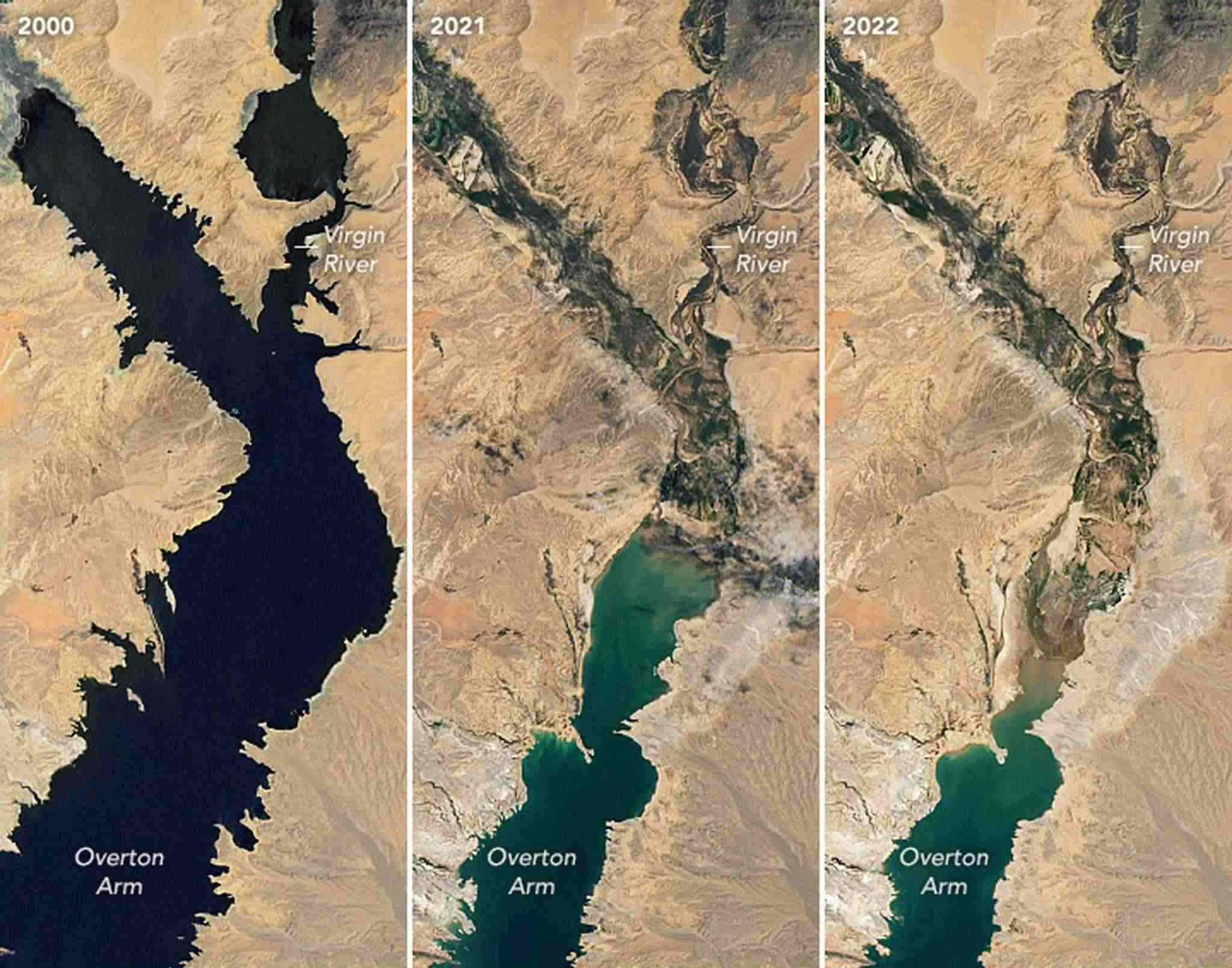 2000年-2022年衛(wèi)星拍攝的美國米德湖變化。