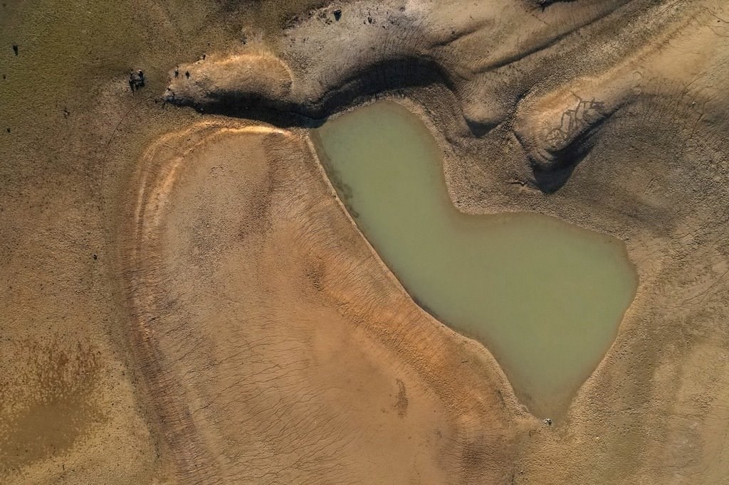 當(dāng)?shù)貢r間2022年8月20日,西班牙維拉諾瓦德索,干旱導(dǎo)致水庫的水位較低。