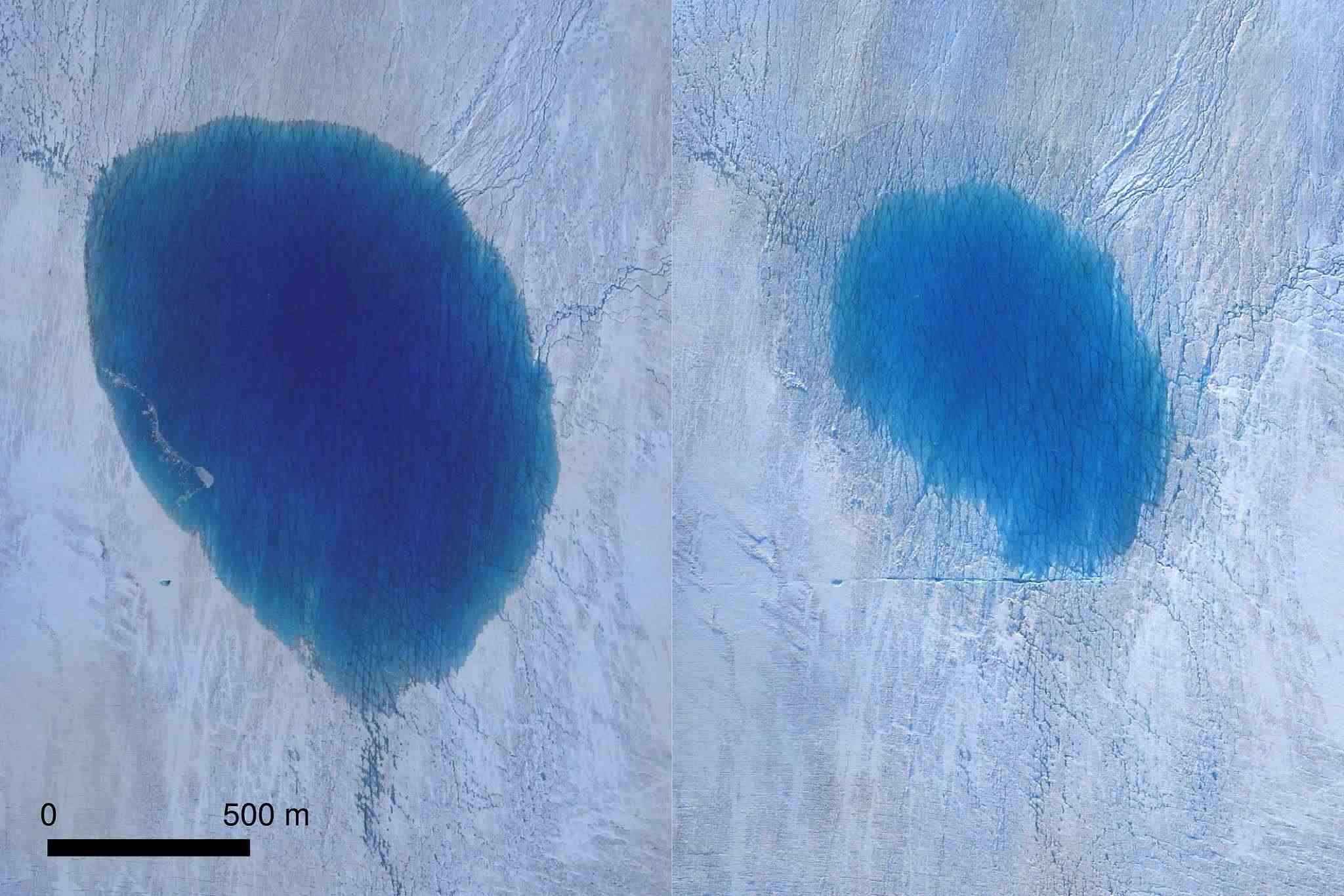 當(dāng)?shù)貢r間2019年12月2日,格陵蘭島冰蓋上一個由融冰的水形成的湖泊在蓄滿水之后開始快速破裂和排水,由于氣候變化,這種現(xiàn)象越來越頻繁。