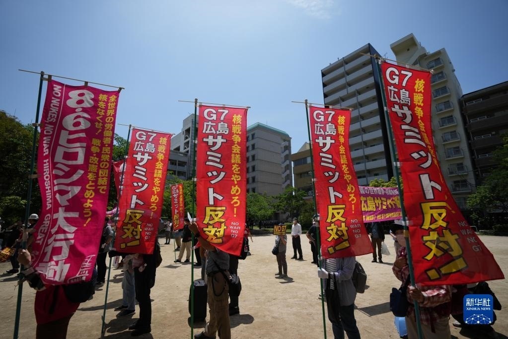 當天,大批民眾再次在廣島舉行大規(guī)模集會游行,抗議七國集團(G7)峰會舉行。   新華社記者 張笑宇 攝