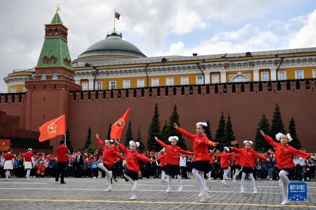 5月21日,在俄羅斯首都莫斯科,孩子們在少先隊入隊儀式上表演。   新華社發(fā)(亞歷山大攝)