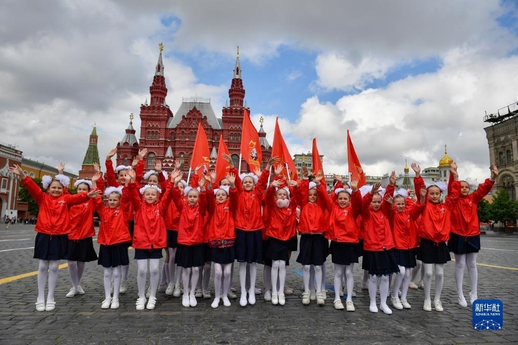 5月21日,在俄羅斯首都莫斯科,孩子們參加少先隊入隊儀式。當(dāng)日,俄羅斯莫斯科舉行少先隊員入隊儀式,紀(jì)念少年先鋒隊成立101周年。   新華社發(fā)(亞歷山大攝)