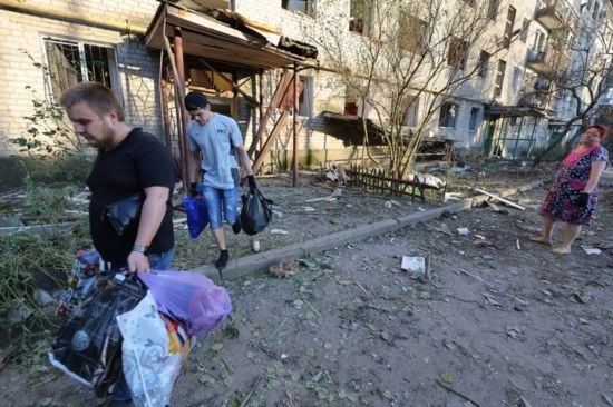 2022年6月20日,頓涅茨克當地居民從被損壞的建筑撤離。新華社發(fā)(維克托攝)