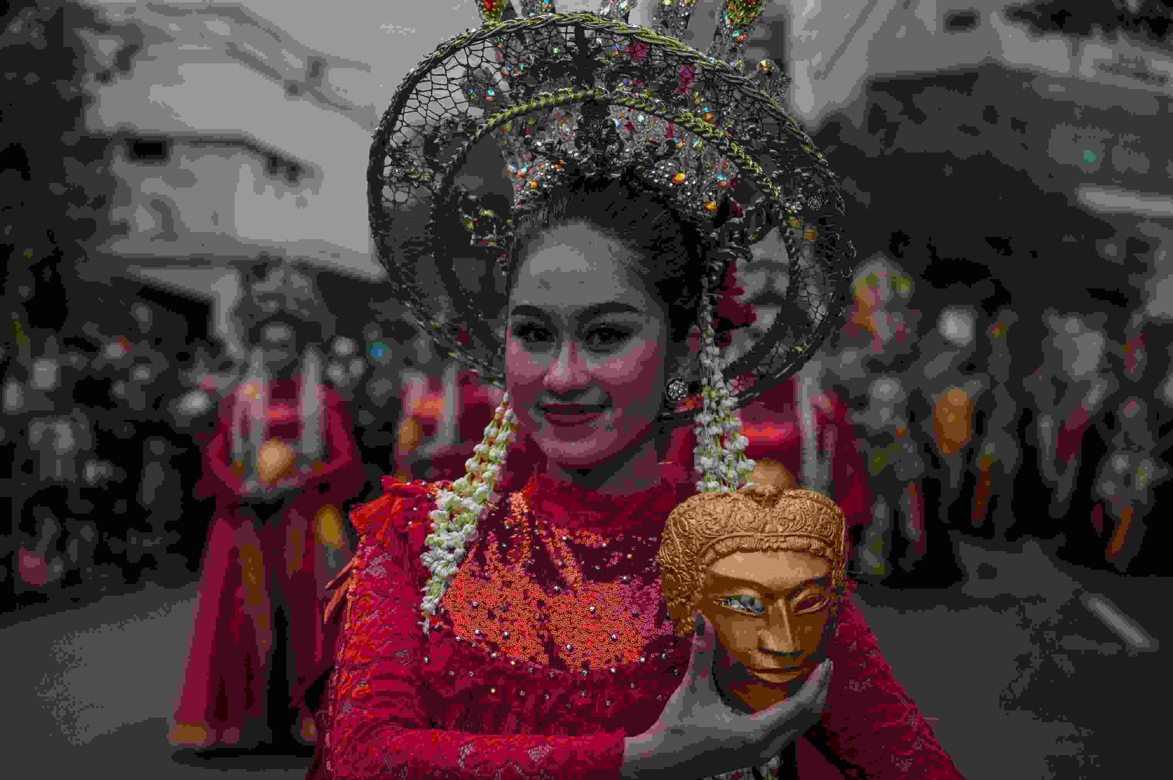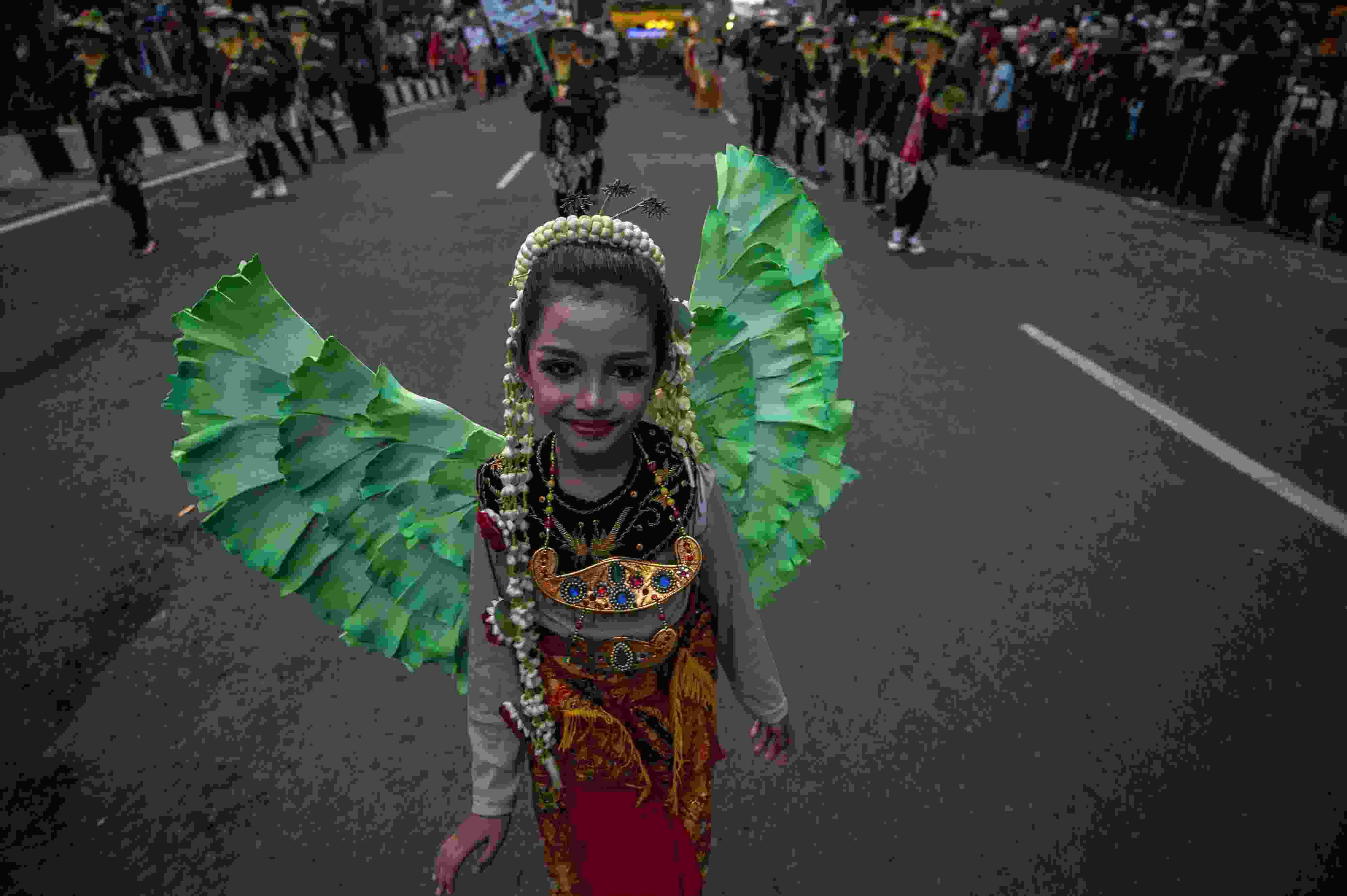 當?shù)貢r間2023年5月27日,印度尼西亞泗水,表演者參加慶祝建城730周年的街頭游行。 視覺中國