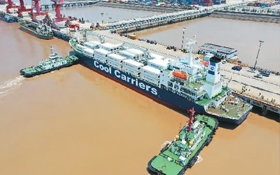 去年以來,浙江省玉環(huán)市持續(xù)加強(qiáng)對(duì)港口企業(yè)的引導(dǎo)力度,拓展大麥嶼港與東南亞國家、RCEP國家的合作。圖為一艘滿載6245噸新季獼猴桃的新西蘭貨輪停泊在大麥嶼港集裝箱碼頭,該航線是大麥嶼港于去年成功開通的RCEP國家水果進(jìn)口航線,實(shí)現(xiàn)了入境水果業(yè)務(wù)零的突破。段俊利攝(人民視覺)