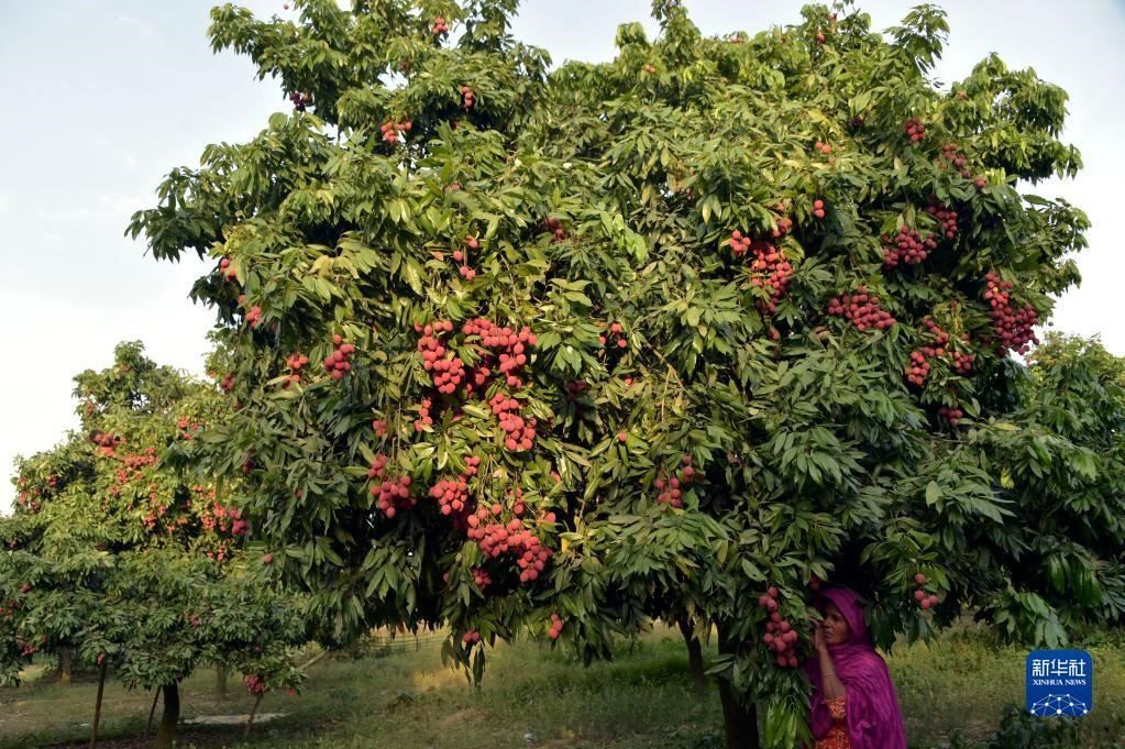 6月4日,一名婦女在孟加拉國(guó)迪納杰布爾的果園里采摘荔枝。新華社發(fā)