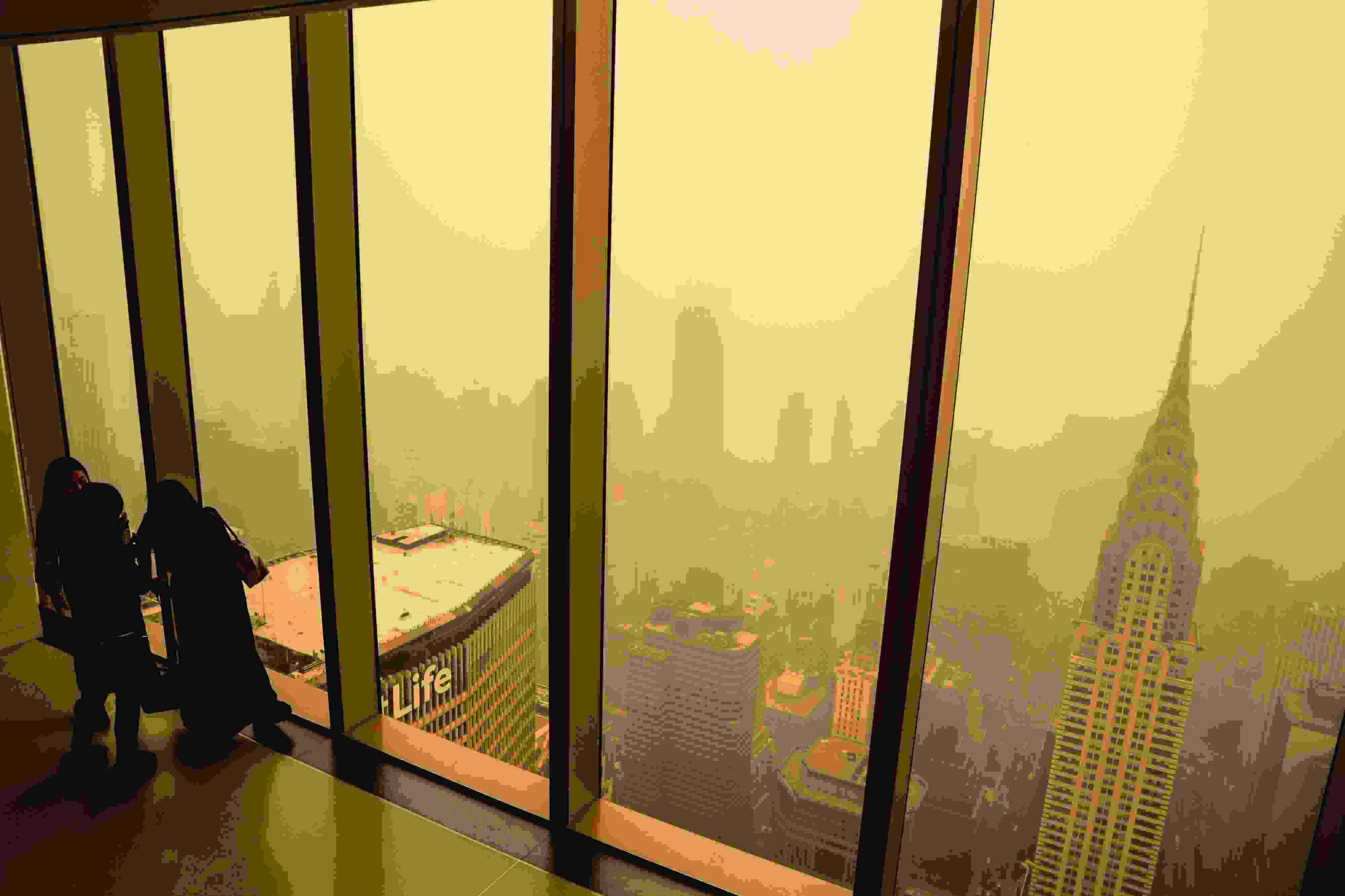 當(dāng)?shù)貢r(shí)間2023年6月7日,受加拿大野火煙霧持續(xù)南下影響,美國紐約籠罩在“橙色霧霾”中。當(dāng)天,紐約成為全球空氣污染最嚴(yán)重的城市。 視覺中國