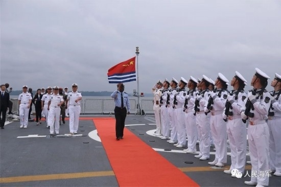 隨后,李津津大使及彭吉中將等一行人登上南寧艦進(jìn)行參觀,彭吉中將在南寧艦艦長和政委的陪同下,檢閱了南寧艦儀仗隊。