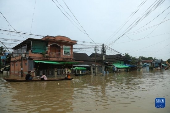 這是8月12日拍攝的緬甸勃固鎮(zhèn)洪災區(qū)。新華社發(fā)(苗覺梭攝)