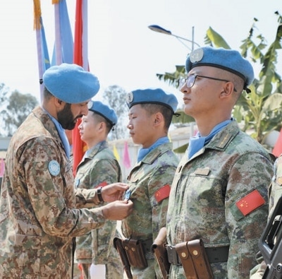 今年是中國(guó)赴剛果(金)維和任務(wù)20周年。日前,中國(guó)第二十六批赴剛果(金)維和部隊(duì)全體官兵被授予聯(lián)合國(guó)“和平勛章”,這是聯(lián)合國(guó)表彰維和人員的最高榮譽(yù)。