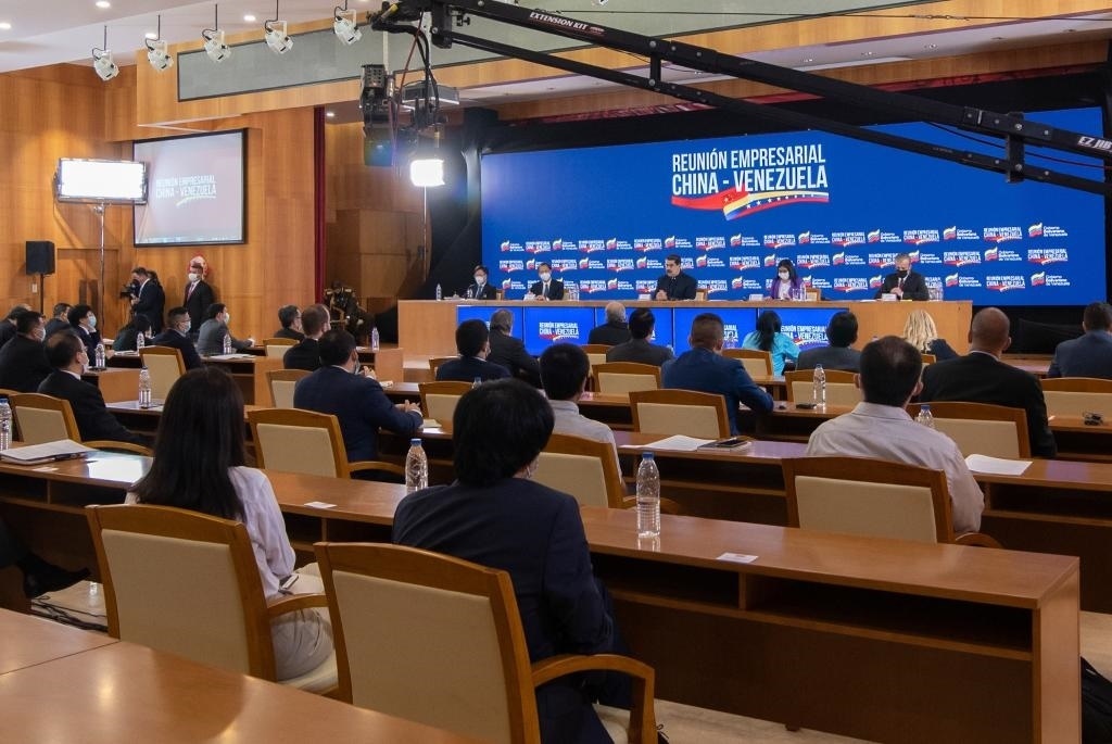 2020年11月6日,委內(nèi)瑞拉總統(tǒng)馬杜羅率內(nèi)閣主要成員與中資企業(yè)代表舉行座談會,希望進一步推進兩國務實合作,造福兩國人民。新華社發(fā)(薩爾戈多攝)