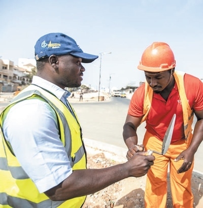 ?塞內加爾達喀爾快速公交項目是塞內加爾第一條城市快速公交線路。這條長約18公里的道路將穿過達喀爾人口密度最高的社區(qū)和核心商務區(qū),建成后有助于緩解首都交通壓力。圖為當?shù)貑T工在項目建設工地交流。新華社記者 李亞輝攝