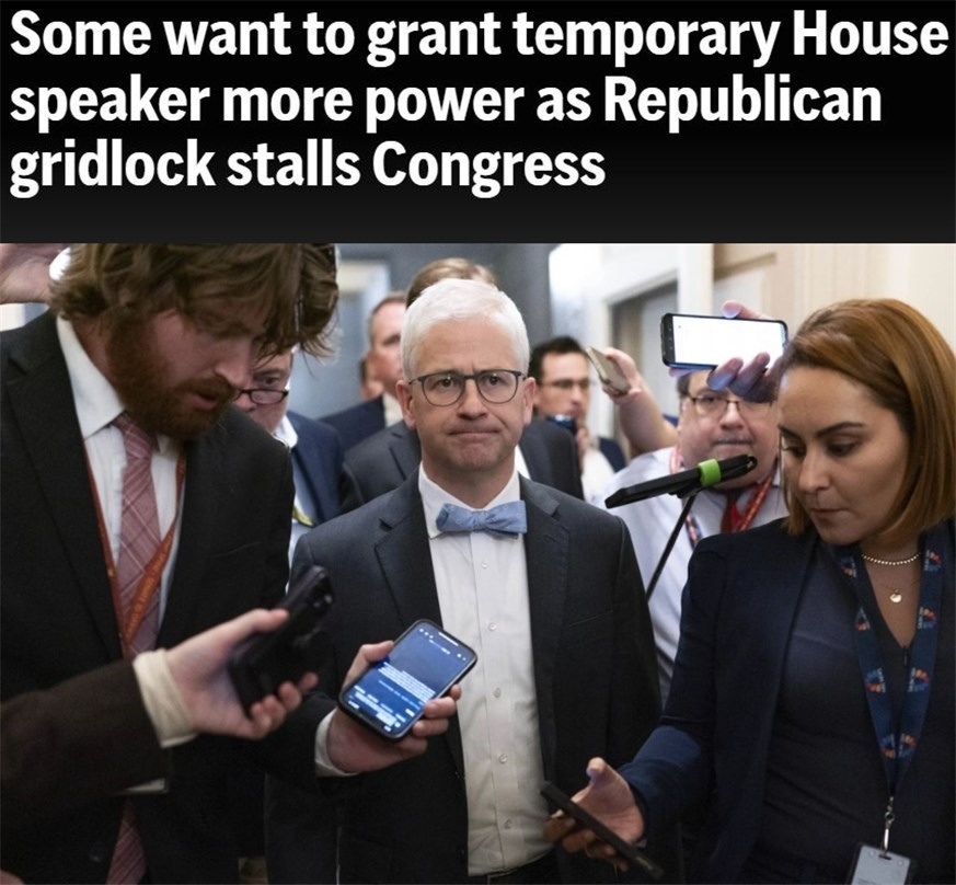 在此之前,為確保眾議院“正常履職”,有人提出當(dāng)務(wù)之急是擴(kuò)大麥克亨利的職權(quán)。不過(guò),一些共和黨議員對(duì)此并不感興趣,認(rèn)為在預(yù)算和其他重大政策方面,為臨時(shí)議長(zhǎng)擴(kuò)權(quán)并不是有效的做法。